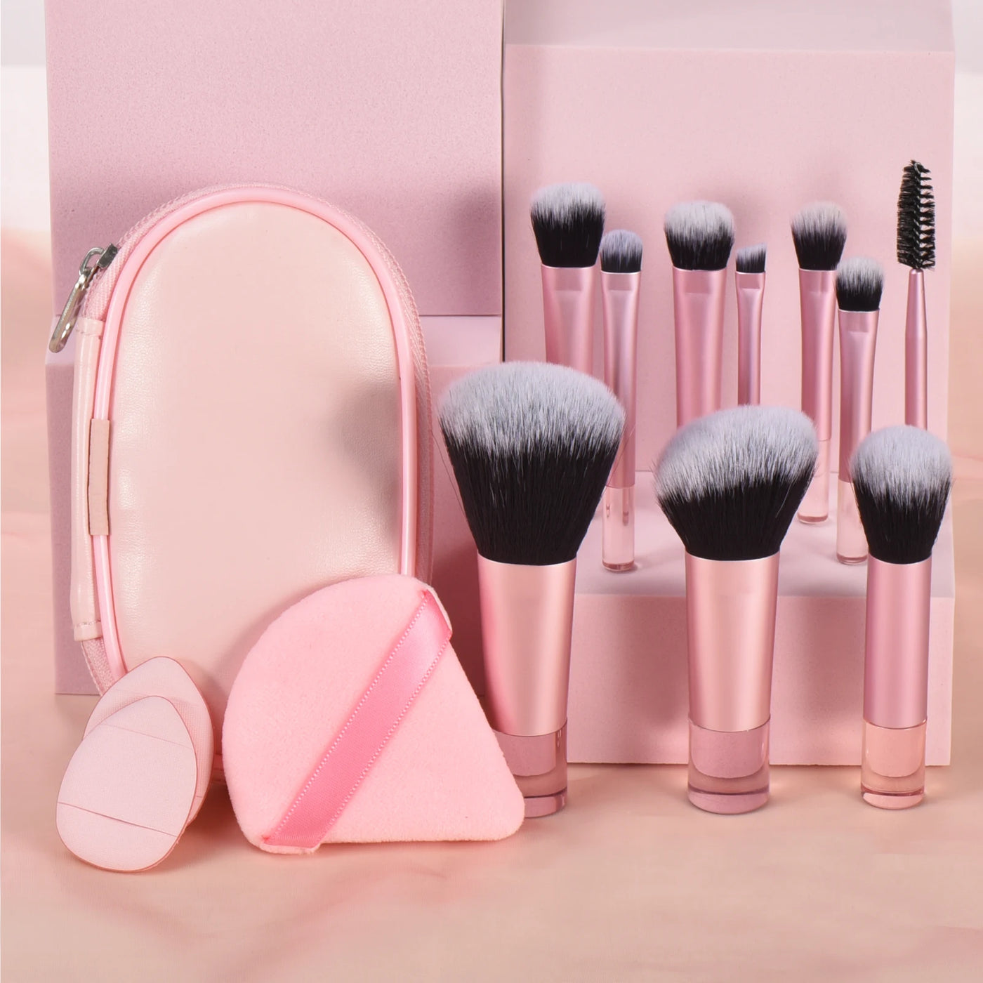 10 color Mini makeup brush Travel portable Makeup Tool Makeup Puff - Palm Brush Professional Makeup tool set Christmas gift - 14 PCS